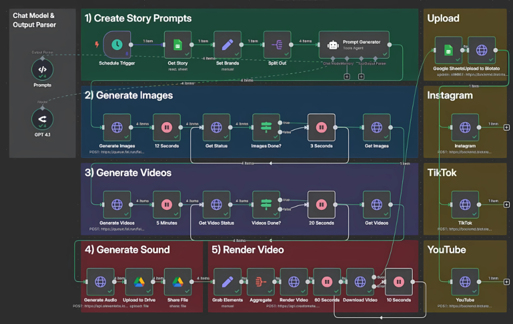 Brainscend developed an AI-powered content automation platform that transforms a written prompt into ready-to-publish media. The system generates images or videos, adds music or sound effects, renders the final output, and automatically publishes it to the desired platform — saving time and ensuring brand consistency.